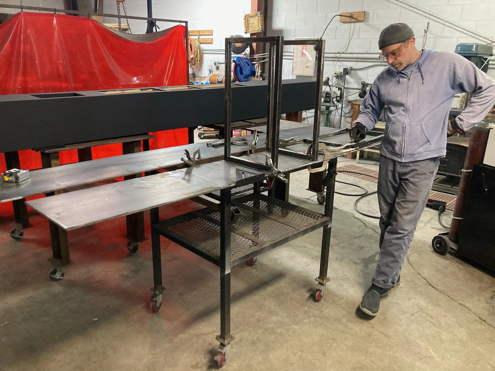 Side-glow fiber begins to lose brightness after about thirty feet, but instead of treating that as a limitation, we built it into the design. Each loop was lit from both ends, allowing light to travel toward the center from opposite directions. The natural fade and overlap created moving gradients of color that shifted like real auroras, changing in response to the music playing in the space.