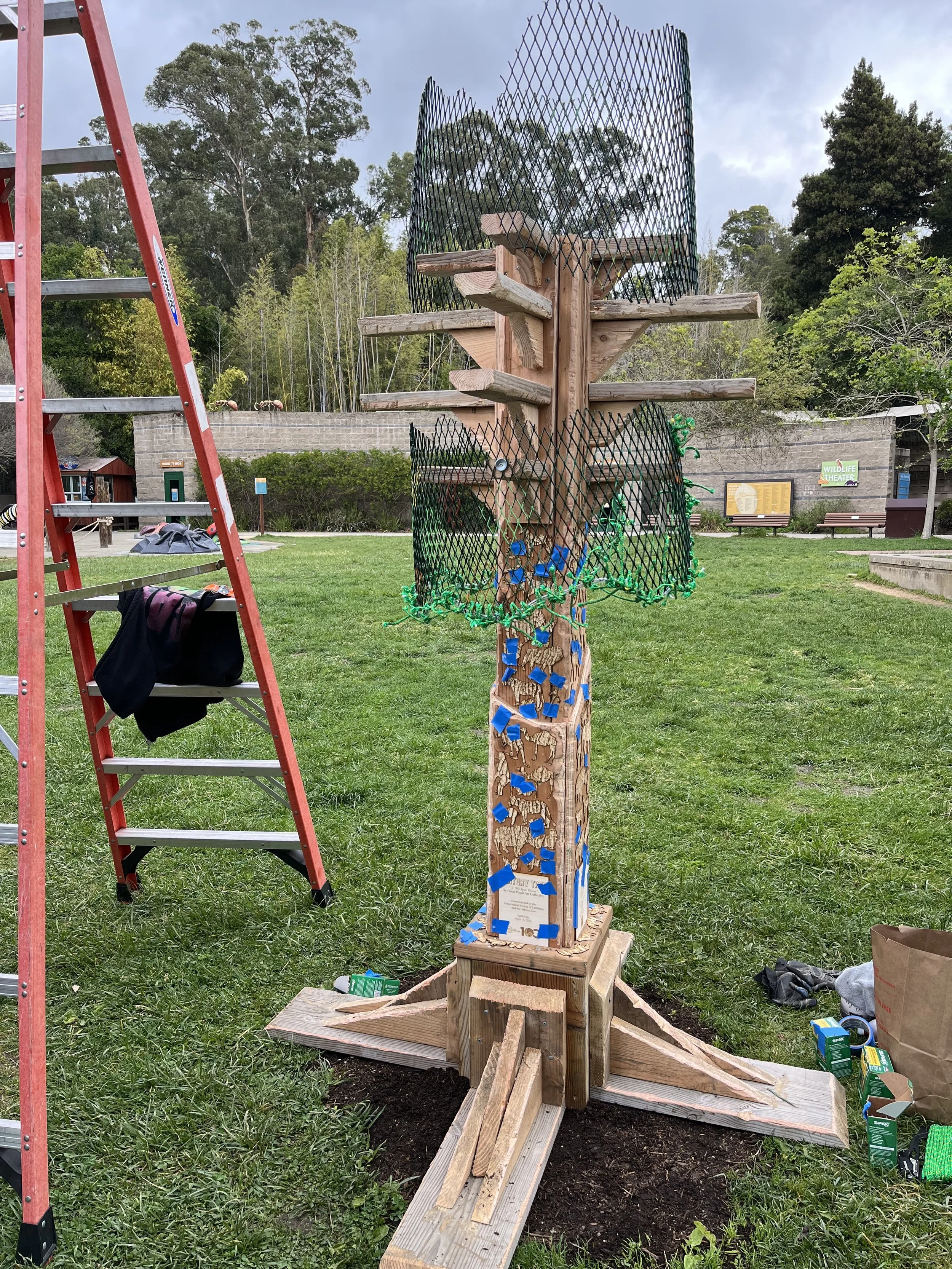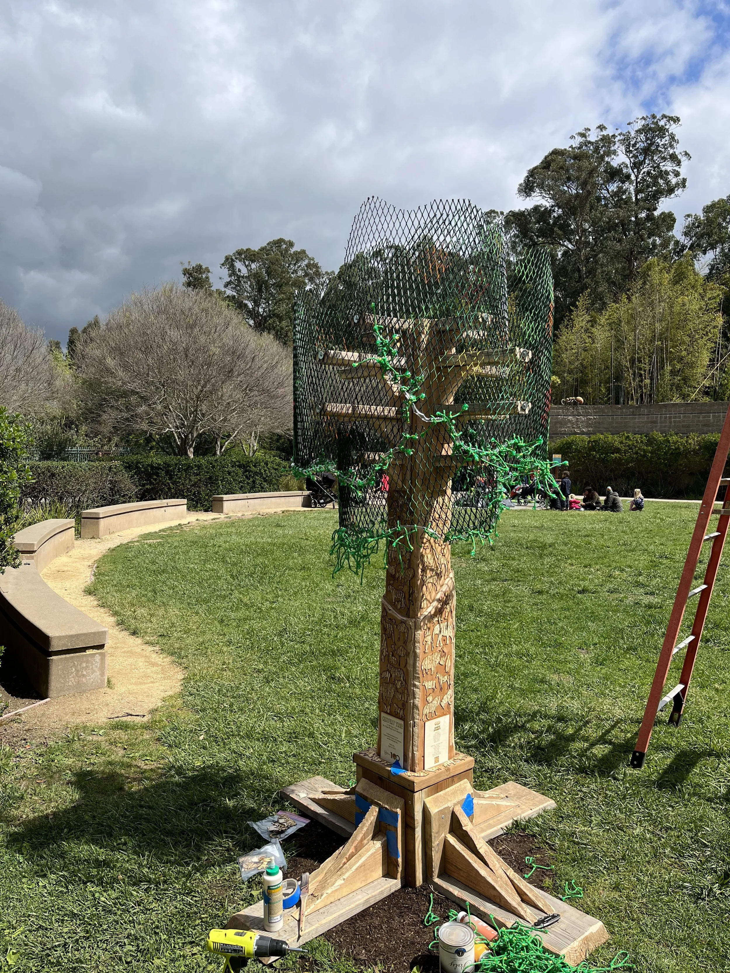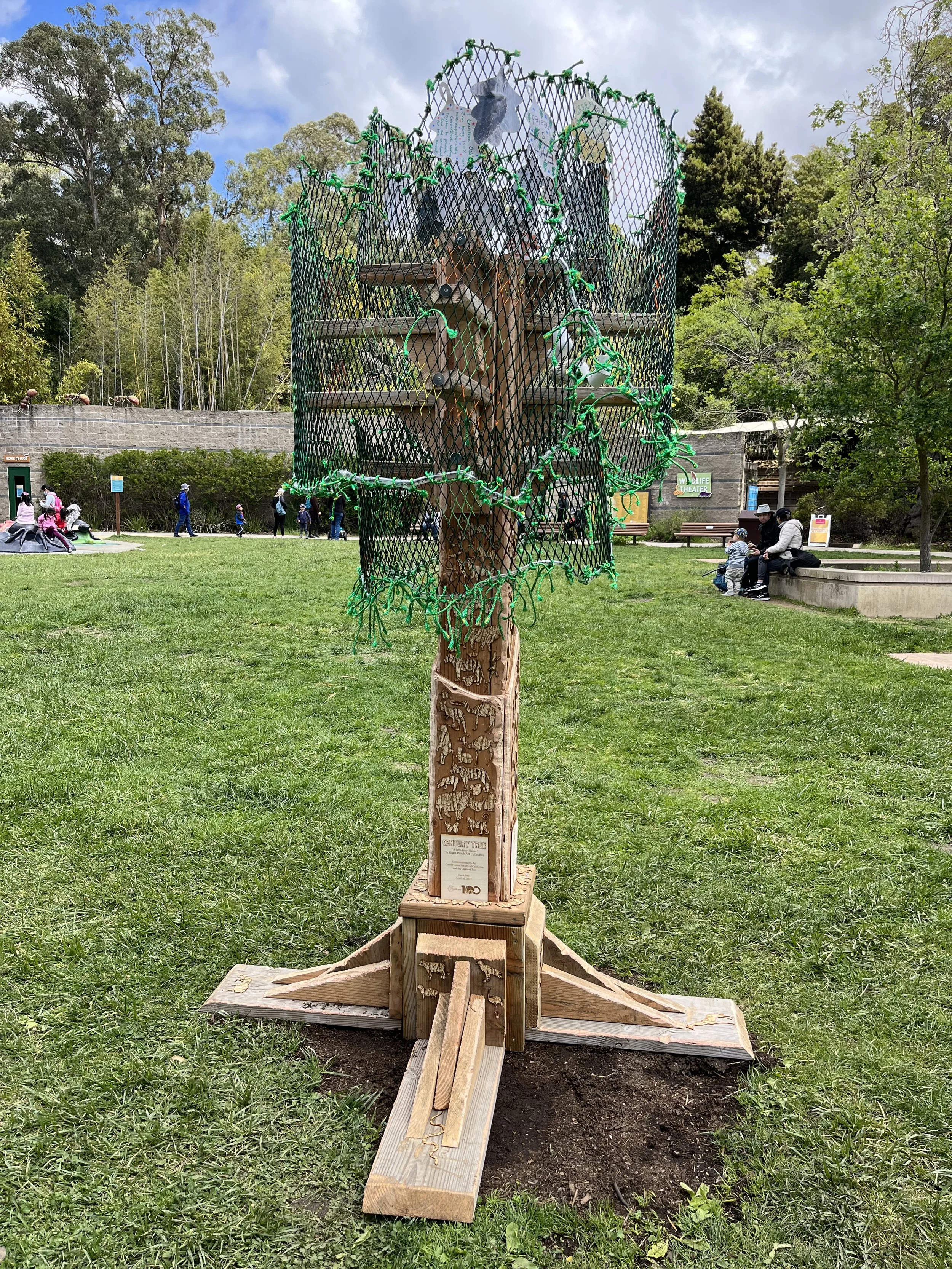 CENTURY TREE was a commission from the Oakland Zoo to celebrate their 100th year of operation. They requested a tree base made from recycled items the zoo had collected over the years. It was installed on Earth Day and over the course of the day’s celebration, attendees added their personal environmental wishes for the next 100 years on leaves made from recycled vinyl signs. For fun, we added laser-cut zoo animals with a bark texture to the trunk of the tree.
